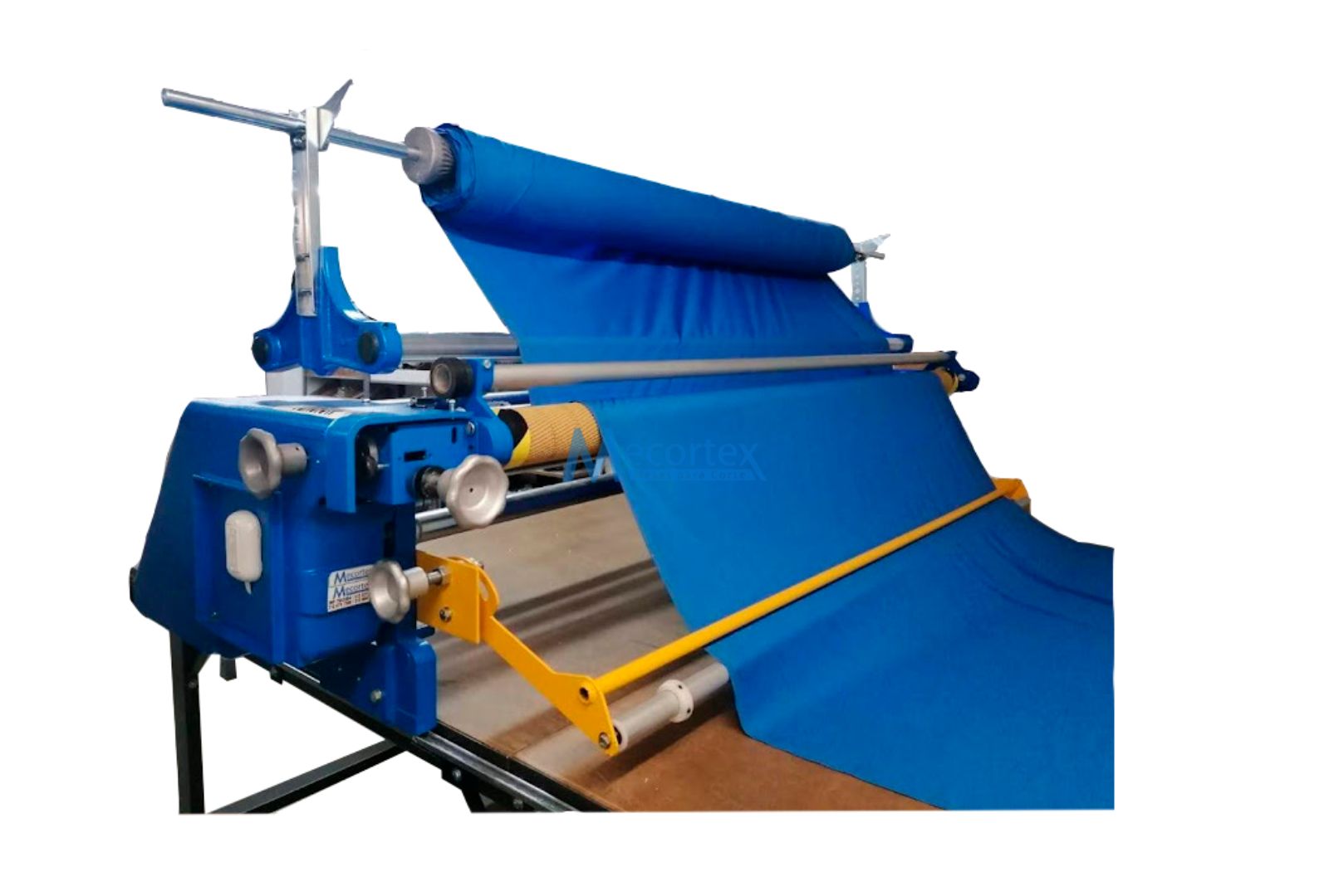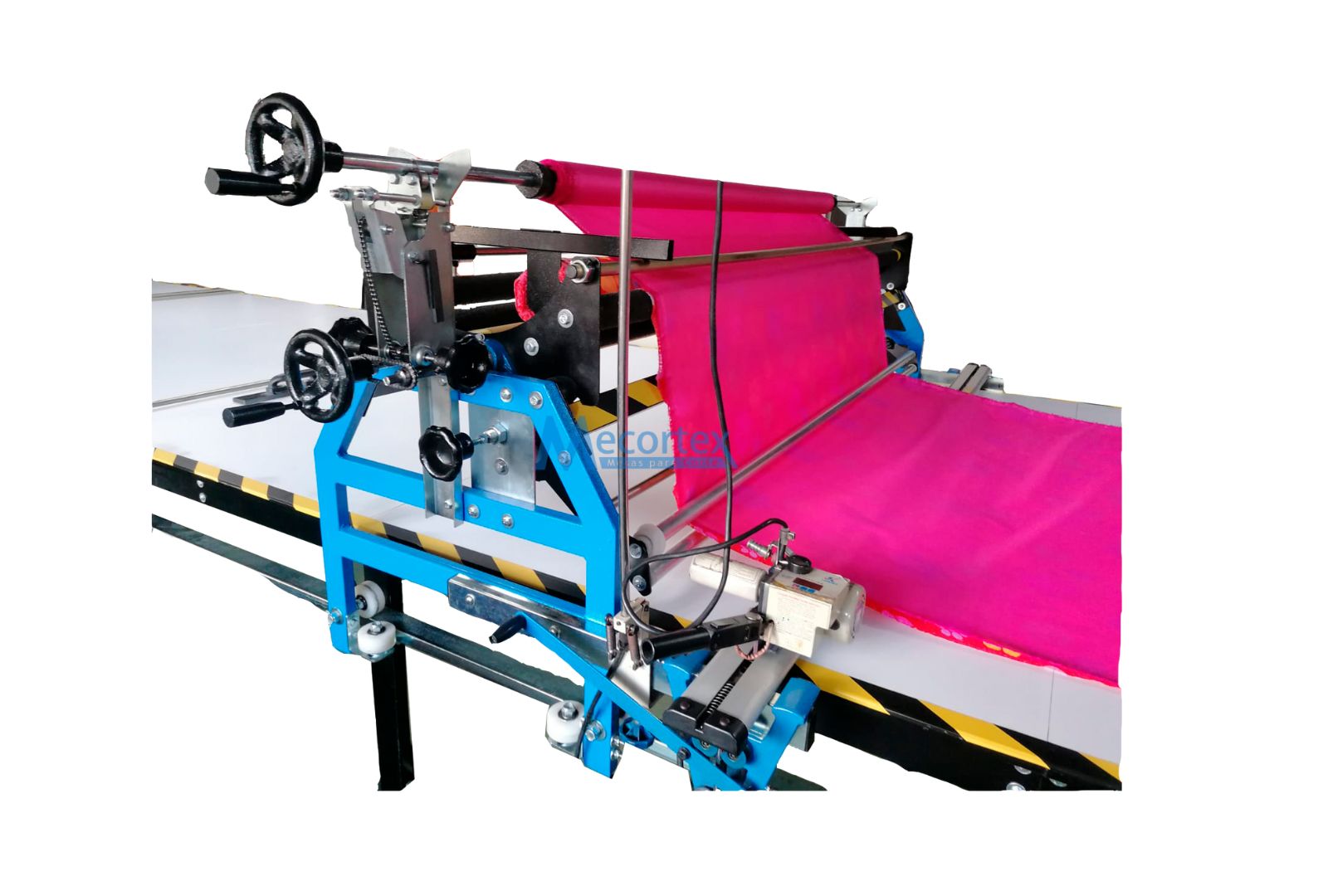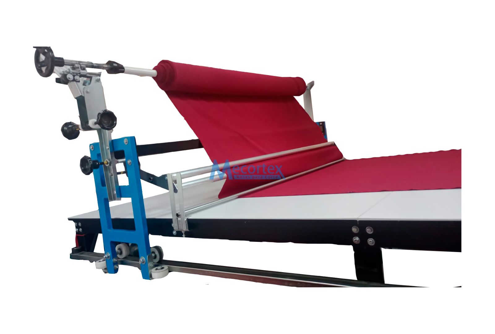 Cuenta con bandeja de reposo para tela especial abierta en tejido de punto y con porta rollo para la tela que viene directamente en rollo y debe ser tendida desde esa posición.
